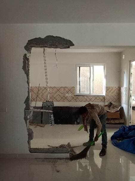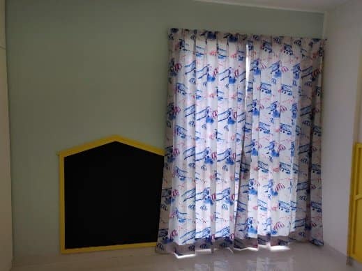 This was their master bedroom with an attached washroom and balcony on the right, wooden flooring given by builder had adequate space to play around.