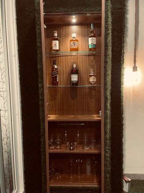 Our designers decided to enhance the beaty of balcony adding unconventional Bar unit, which is initially planned in the living area carpeted in an artificial turf, accompaniments beautiful Bangalore weather turned out be the best spot to hang out with friends.