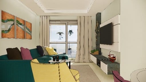 Our client wanted this living space to be designed in a very minimalistic yet radiant, our team bringing clients thoughts into reality perfectly executed this place using white ruff lamination for tv unit replacing sand like feel with rustic lamination to give coastal appearance complementing the whole look with quirk white floral and blue hued sofa to bring in a vibrant energy adds required strike to the living area.