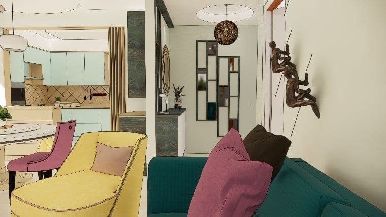 We followed Eclectic design style as the client’s requirement was matching this style. This beautiful home’s interiors based out in Bangalore (SNN Green Bay) belong to Mr. Adithya and Ms Soundrya. If you are looking for a colour full chic style house, you’re at the right place. Olangana has been addressed as one among the best interior designers in Bangalore. You can check out the details below to witness the idea to execution work