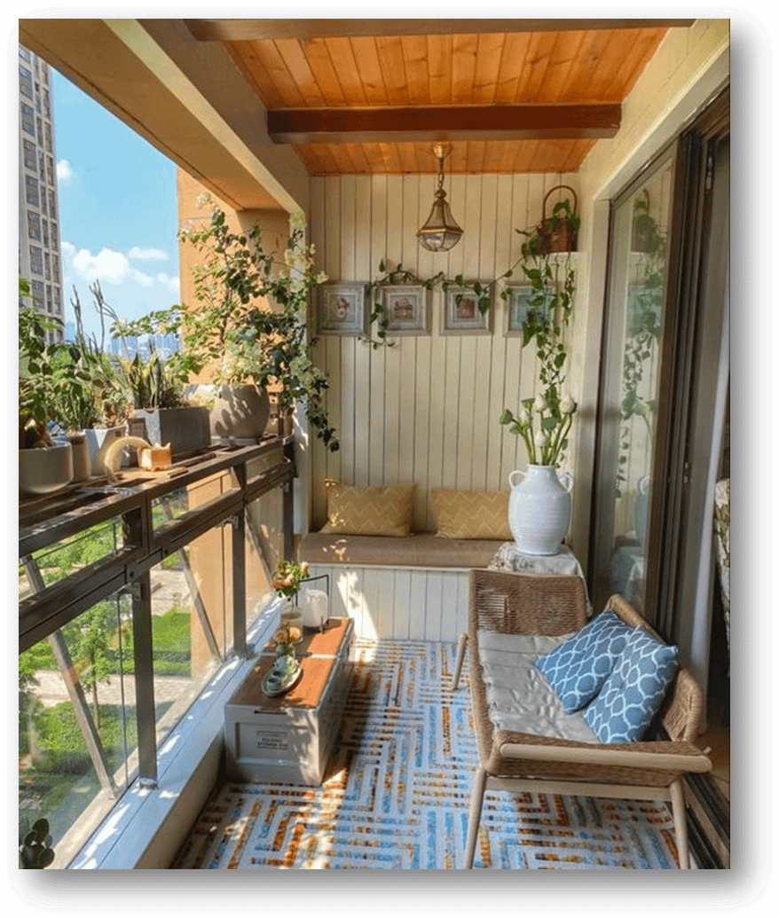 Floors are mostly neglected, be it indoor or outdoor. Just make it noticeable from now on with Designer Carpets. If you are searching for small balcony ideas, then rich and vibrant carpets are perfect, to begin with. In balconies where space is relatively less than in other parts of the house, it is natural to have a deficiency of proper sitting arrangements. So, what you could do is lay down a smooth and clean carpet and sit on it.