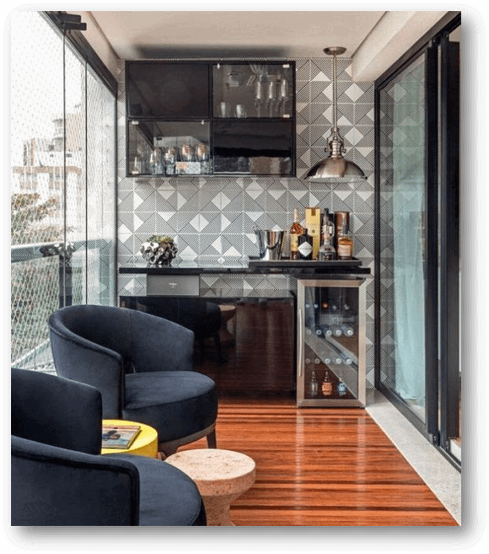 Another very important aspect of balcony design is the lighting. Much like the indoor living space, your balcony must be sufficiently illuminated while creating a beautiful setting for your tranquillity.