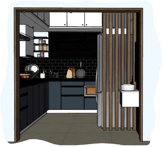 We have designed this bespoke kitchen in hues of royal blue and plain white cabinets, our team was mindful in picking right elements to fabricate this dreamy kitchen, right from back tiles to appliances, a tall unit specifically designed to accommodate OTG appliances like oven and wooden partition was made to sunder from rest of the space, we the best modular kitchen designer in Bangalore, create beautiful design concepts based on the client’s requirement.